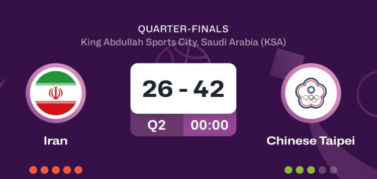 8月14日男篮亚洲杯1/4决赛战报,中国台北队半场以42-26大幅领先伊朗队。